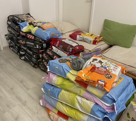 ACI hat, einem Aufruf von RdB folgend, Futter für Ukraine Hunde und Katzen vor Ort gespendet.