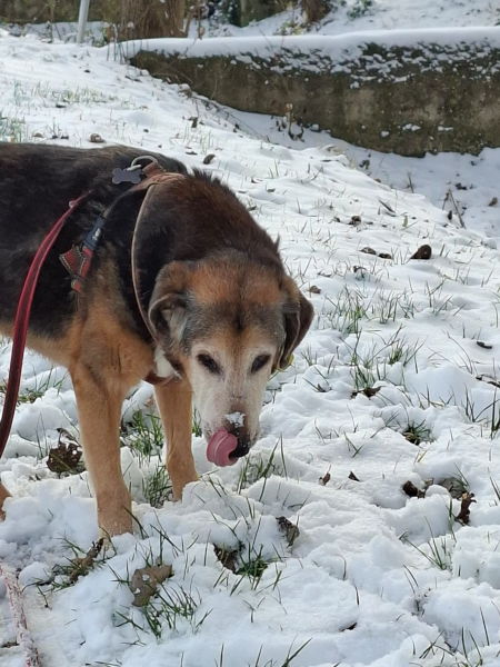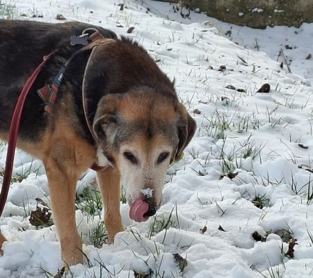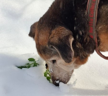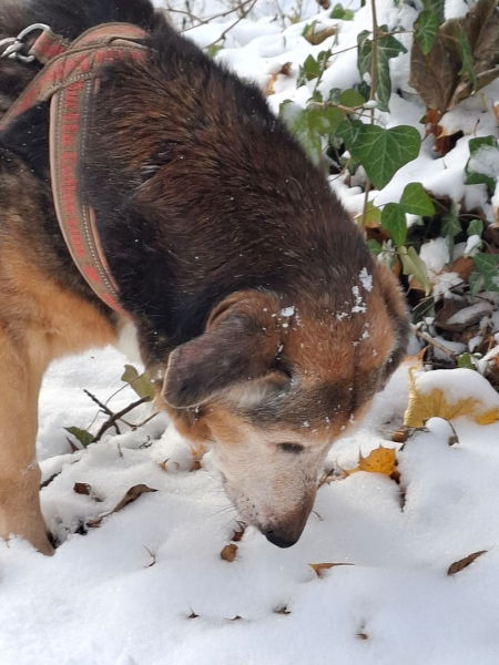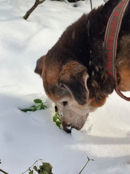 Old Boy ALDO findet Schnee, und die damit verbundenen Gerüche – immer noch sehr interessant!