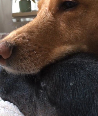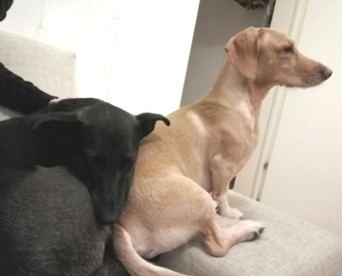 Er hat sich recht schnell auf das Stadtleben gewöhnt. Fahren mit Öffis ist noch etwas stressvoll für ihn, aber wir arbeiten daran. Mit seinem neuen Dackel-Bruder versteht er sich auch gut, sie schlafen öfters aufeinander ein.