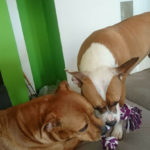 Hundefreunde hat sie auch schon gefunden in der Nachbarschaft. Sogar 2 riesige deutsche Doggen sind dabei (eine davon hat 90 kg !!)