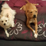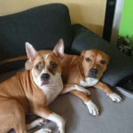 ich hoffe, dir geht es gut. Ich dachte mir, ich melde mich wieder mal und schicke dir ein paar aktuelle Fotos von Josy. Zumal es ja genau 1 Jahr her ist, als ich die Süße von euch übernommen habe. In der Zwischenzeit ist ziemlich viel passiert bei uns. Meine Freundin ist mit ihrer Hündin, 3 Katzen, Meerschweinchen und Hasen von W. zu mir gezogen. Ihre Hündin heißt Kiana und ist ebenfalls ein Amstaff. Mittlerweile sind sie unzertrennlich, und wie du auf den Fotos siehst, kuscheln sie bei jeder Gelegenheit zusammen… so süß. Josy geht es prächtig und ich bin überglücklich, dass ich sie habe.