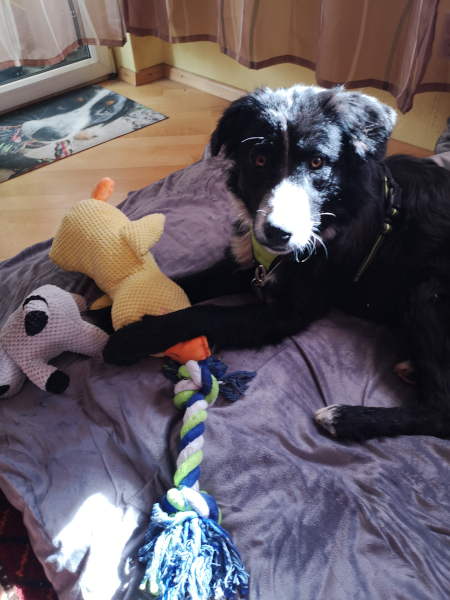 Zuhause ist er schon recht entspannt, draußen, in der fremden, großen, weiten Welt arbeiten wir an seiner Angst.
