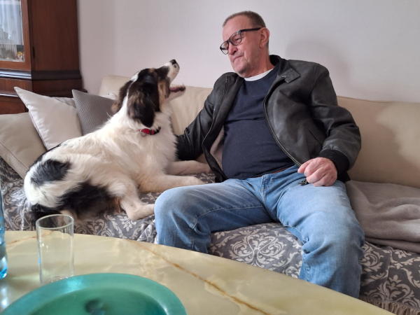 Frodo geht es sehr gut. Unser Nachbar kommt ihn mit Leckerlis besuchen. Die 2 fühlen sich sehr wohl auf meiner Wohnzimmerbank.