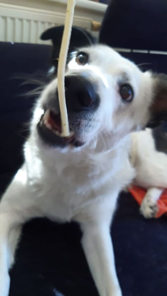 Enja geht es gut, sie hat Freude, sich mit anderen Hunden zu treffen und ihr Leben zu genießen.