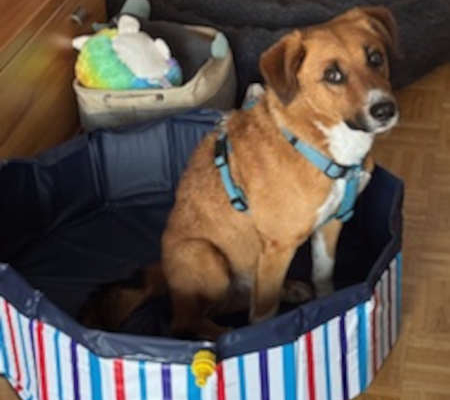 Das Planschbecken mag er aber nur ohne Wasser.