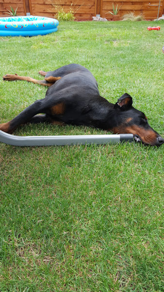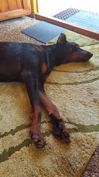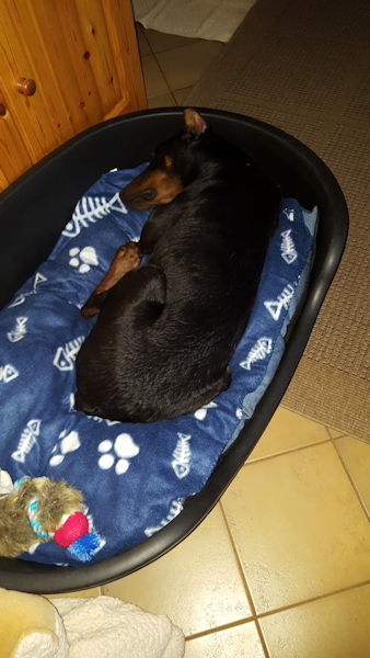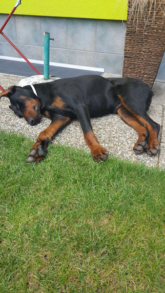 Dario war sehr brav. Hat in Ruhe alles erkundigt hat sich noch baden lassen war brav Gassi und jetzt ist Pause.
