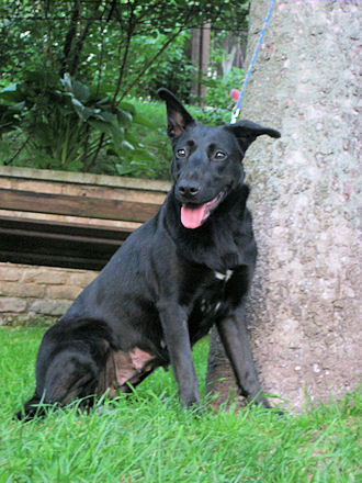 ALDA ist um die 18 Monate alt, 18 kg schwer, sterilisiert und 46 cm groß.