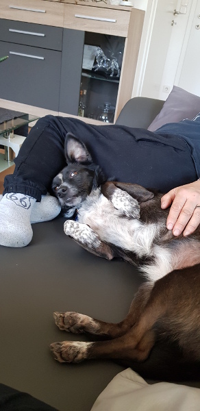 Dunja hat sich die letzten Tage sehr gut eingewöhnt. Sie ist eine so ruhige und brave Maus, die immer um uns herum ist. Die Spaziergänge mit ihr machen große Freude, nicht zuletzt, weil sie mit allen Hunden super gut auskommt und gleich Freundschaften schließt.