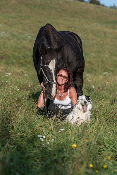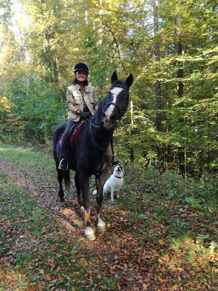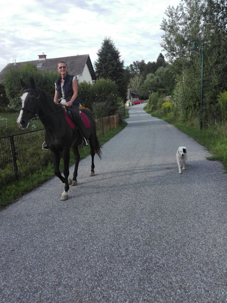 Mit meinem großen schwarzen Pferdekumpel, dem Larino, verstehe ich mich jetzt prächtig, ich beiß ihn auch nicht mehr in die Nase. Wir sind gemeinsam im Wald unterwegs, und das ist so schön. Alles in allem habe ich ein wunderbares Leben, lerne Tricks, geh auf die Alm und in den Wald, und Zeit zum Schlafen habe ich auch genug! Nur Gewitter und die blöde Knallerei zu Silvester machen mir noch immer riesengroße Angst, aber es ist schon ein bisschen besser geworden.