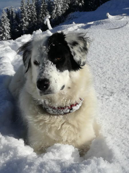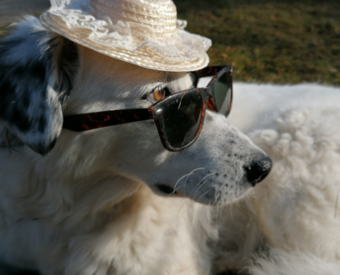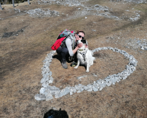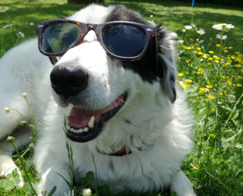 Wandern waren wir auch sehr viel, die Berge mag ich wirklich gerne, da darf ich laufen- und wir hatten immer Spaß. Leider können wir jetzt nicht mehr so oft wandern gehen, weil die Arthrose jetzt auch schon in meinen Hüftgelenken sitzt. Ich weiß zwar nicht, was das bedeutet, aber meine Mami ist immer traurig, wenn sie das sagt, weil sie weiß, dass das ziemlich schmerzhaft für mich ist. Die Tierärzte, zu denen ich immer muss und die ich so gar nicht mag, brauchen immer so lange für eine Diagnose… Wir waren jetzt beim Chiropraktiker, der hat meine beiden Hüftgelenke wieder eingerichtet, weil die durch meine Schonhaltung schon aus der Pfanne gerutscht sind. Jetzt geht’s mir wieder besser, und ich mag schon wieder viel lieber laufen. Aber ich bekomme jetzt so homöopathische Mittel und CBD Tropfen, und weil meine Mami hofft, dass es mir hilft, muss das Zeug eben geschluckt werden. Nun ja, es ist eben wie es ist, aber ich habe trotzdem ein schönes Leben, weil meine Familie immer auf mich aufpasst und immer für mich da ist- und ich nichts machen muss, was ich nicht mag. Und weil es im Moment so heiß ist, tun wir einfach gar nichts 🙂