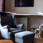 Die kleine Maus selbst hatte zu Beginn ja gar keine Berührungsängste und war von Tag eins an absolut angstfrei und anhänglich. Ich habe tatsächlich noch nie eine so bezaubernde Schmusemaus kennengelernt. Von Befangenheit angesichts der neuen Umgebung war da auch keine Spur, und am liebsten hätte sie sofort die gesamte Wohnung inspiziert und in Beschlag genommen. Aber um unseren Altkater mit der neuen Mitbewohnerin nicht zu sehr zu schockieren, hatten wir sie in den ersten 1,5 Tagen zunächst im Arbeitszimmer einquartiert. Dies hat sich insofern angeboten, als dass wir hier unsere Hängekästen ohnehin als Liege- und Kletterflächen mit eingeplant hatten. Der Raum ist auch jetzt noch ihr“ Zimmer, und da der behäbige Kater die Kletteranlage nicht mehr nutzt, hat die Kleine Embra gleichzeitig einen privaten Rückzugsort hat, der nur ihr gehört.