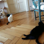 Ein bisschen problematisch sind noch die Situationen, wenn Embra einen Raum betritt. Hier regiert unser Kater häufig noch recht überrascht und überfordert-biestig und scheucht sie zurück in ihr Zimmer. Aber auch solche Zusammenstöße verlaufen komplett ohne Fauchen, Geschrei oder Keilereien, und wir sind sicher, dass sich mit der Gewöhnung auch sie bald legen werden. Embra lässt sich davon auch nicht unterkriegen und kommt halt wieder, sobald der „Dicke“ ihr den Rücken zudreht.
