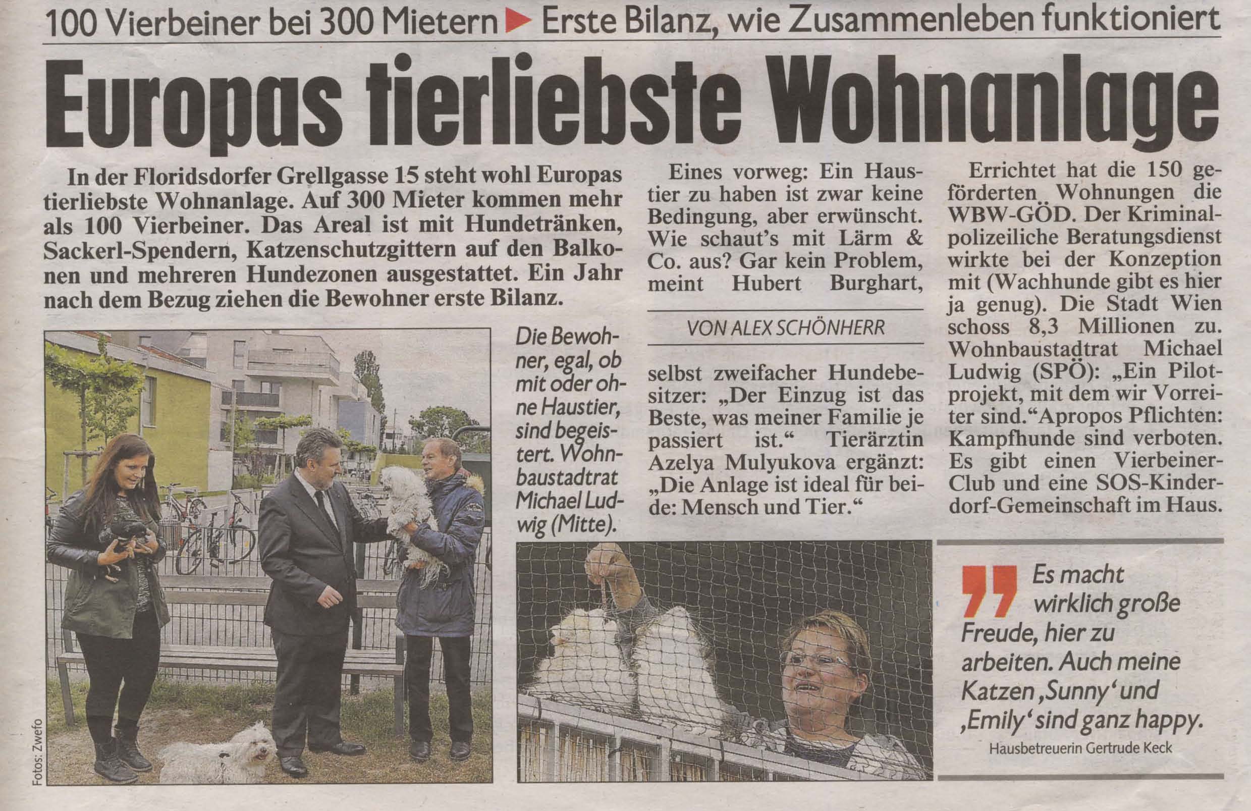 EUROPAS TIERLIEBSTE WOHNHAUSANLAGE befindet sich in der GRELLGASSE 15 in WIEN 21!!
