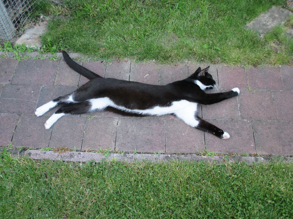 er geht schon in den garten, hat viel freude auf seinen entdeckungstouren und schläft gelegentlich auch bei uns im bett 🙂