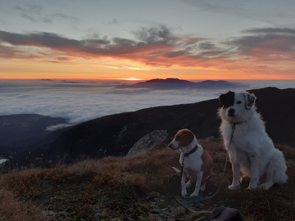 Am Foto: Fili (Ex-Dinka) und Kenny (Ex-Kent) auf 2000 m Höhe bei Sonnenaufgang am Zirbitzkogel nach einer Nacht im Zelt 😀.