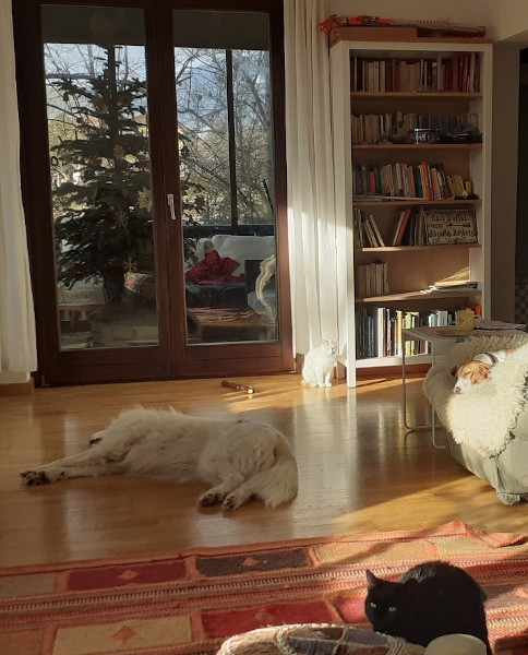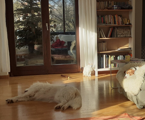 Am 3. Foto das Katzen-Hunde-Idyll zu Hause 🙂