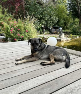 Gestern hatte er eine Hundedame aus unserer Gasse zum Toben im Garten. Das war ein Trara! Danach war er erledigt 😁.