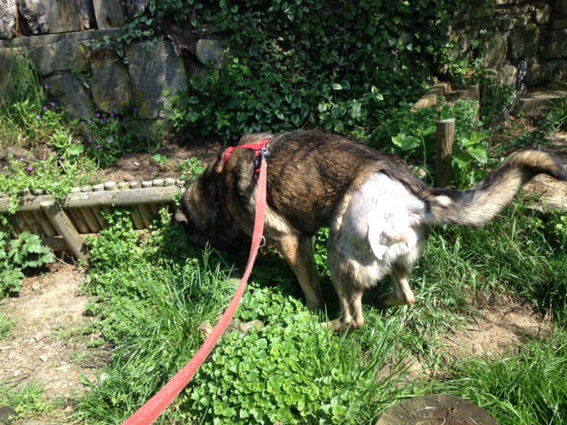 ist schon wieder – nach seiner großen OP am Dienstag, 5.5.15 – auf den Beinen.