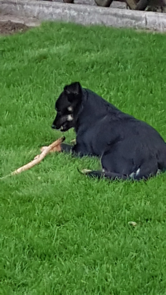 Ihren Geburtstagsknochen hat sie irgendwo in den Thujen versteckt 😂🐕🎂.