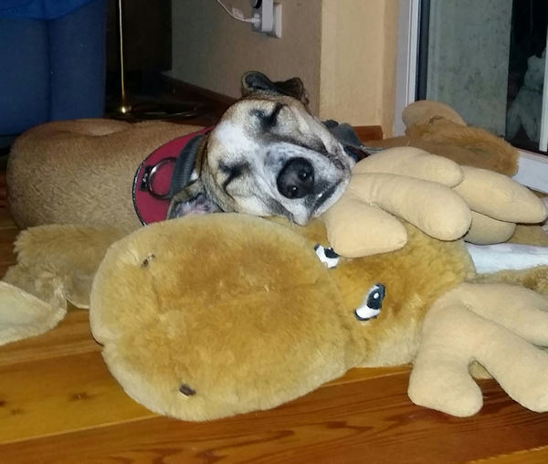 Uns geht’s gut und wir hoffen, Euch allen auch. Kalle kann sogar mit zur Arbeit…..er macht das wirklich gut.