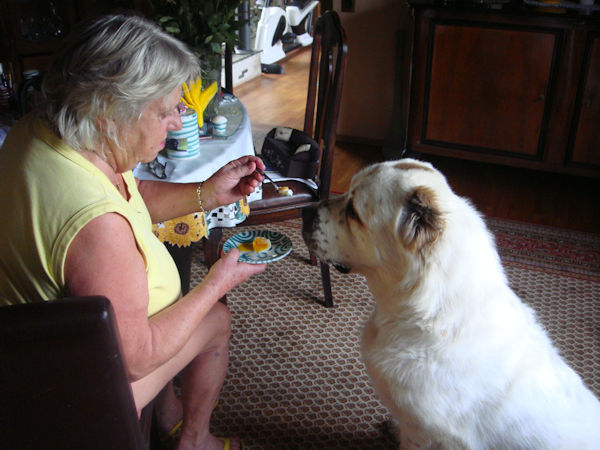 Natürlich mit Knackwürsten und feinen Leckerlis. Auch viele Streicheleinheiten und Bussis dürfen nicht fehlen.