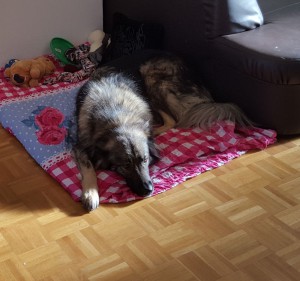 Wir nehmen Lana auch zum Zelten mit- und sie genießt es dann in vollen Zügen, und ist ganz brav dabei.