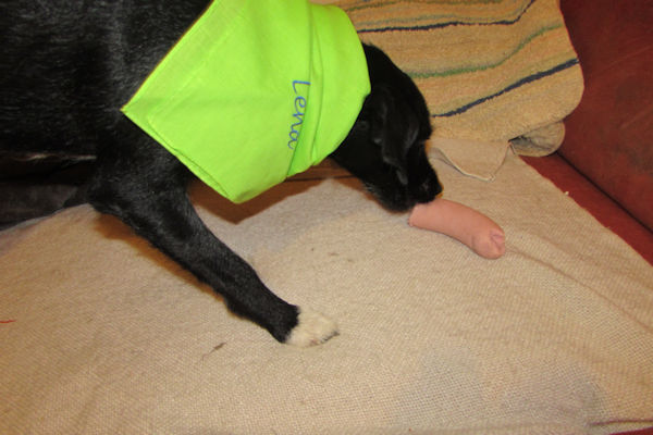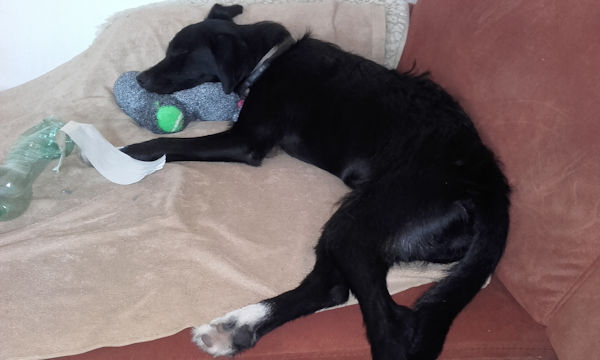 Heute wars echt spannend, denn Christine hat mit mir einen Ausflug zum Tierarzt gemacht wo auch mein Chip registriert wurde. Dort konnte ich gleich mit einigen Hunden spielen und bin jetzt im wahrsten Sinn des Wortes hundemüde. Kater Murli ist schon mein Freund, Mietze Mina wird es sicher in kürzester Zeit, denn ich bin einfach unwiderstehlich. Zuhause bin ich schon ein wenig frech und habe bereits Fraulis Schlapfen in eine originelle Form gebracht. Aber es ist mir niemand böse und ich werde rund um die Uhr verwöhnt.