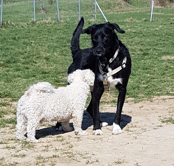 Seit 3 Tagen weiß ich, dass man Lacki auch beim Spazieren-Gehen machen kann, Haufi gehört noch in den Garten.