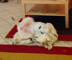 In der Welpenschule waren wir auch schon am Samstag, das hat ihr sehr gut gefallen, es waren 2 andere Welpen da und sie hat sehr lieb mit ihnen gespielt und ist sehr gelehrig.