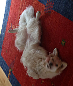 Nachdem sie uns dauernd unsere Schuhe und vorallem die Flipflops entführt und zu kauen beginnt, habe ich ihr heute Kauknochen aus Rinderhaut gekauft, da ist sie wirklich beschäftigt.
