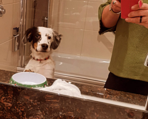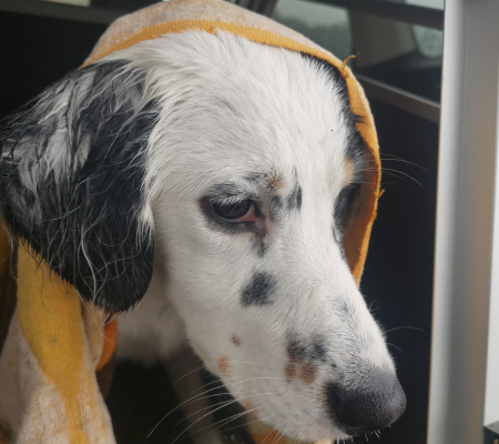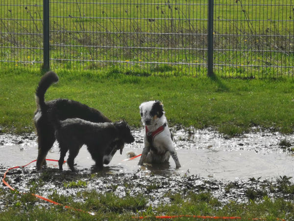 War ja klar: Welcher Hund entdeckt in der Hundeschule als erstes den Matschsee für sich? MINA!