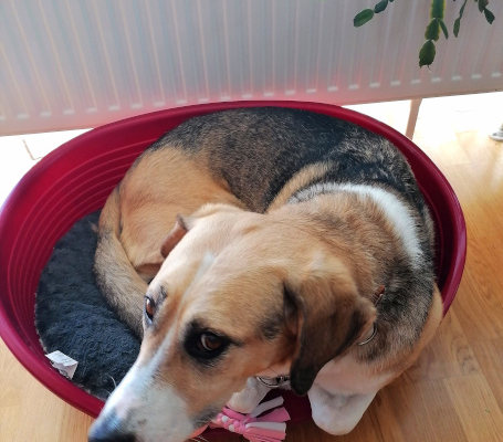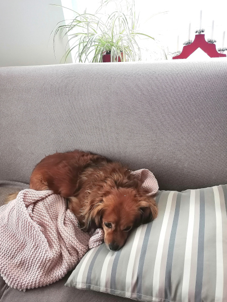 Sie hat sich auch gleich in mein Körbchen gelegt und sogar auf meine Couch!