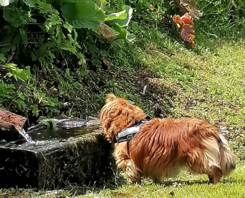 Egal: Hier gab es sooo viel zu schnüffeln und auch einen Trog mit kaltem Quellwasser.