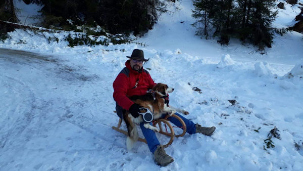 Nelly meisterte den Aufstieg zur Hütte ohne Probleme und beim Runterrodeln lief Nelly die halbe Strecke neben her, und den Rest nahm sie auf dem Schlitten auf mir Platz und genoss die Fahrt.