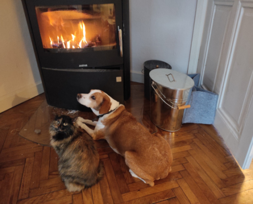 (Der Kamin, der Lieblingsplatz von allen in diesem Haus, sobald er eingeheizt ist.)