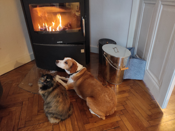 (Der Kamin, der Lieblingsplatz von allen in diesem Haus, sobald er eingeheizt ist.)