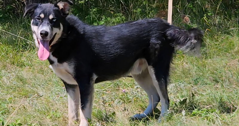 Der Bursche ist ein attraktiver Junghund, der seine Husky-Gene nicht verleugnen kann!