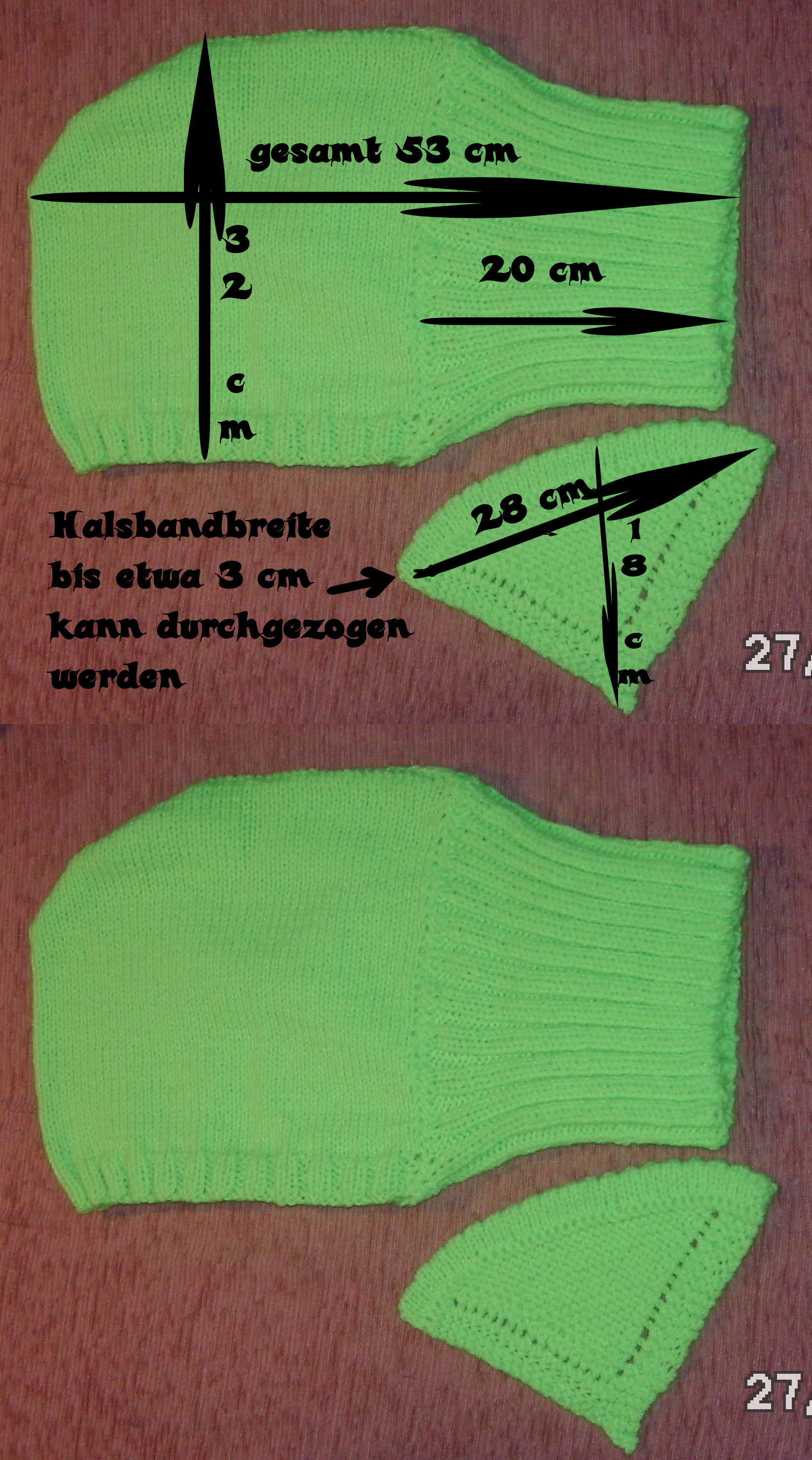 [/ezcol_1quarter] [ezcol_1quarter]Set rot/grüner Scoody (Loop mit Kapuze), beidseitig tragbar + Dreieckstuch