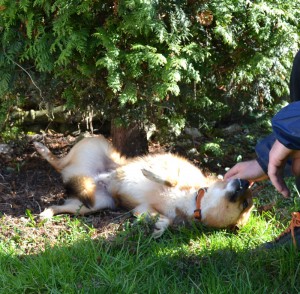 Auch ist er der große Streitschlichter unter den Hunden. Es gibt ein paar Rüden, die furchtbar bellen, wenn sie sich sehen, und Lupo steht dazwischen und sagt nichts. So, dass seine Freunde auch keine rechte Freude mehr daran haben. Er kann einfach alle gut leiden und es ist interessant, ihn zu beobachten.