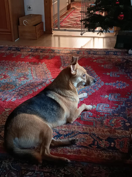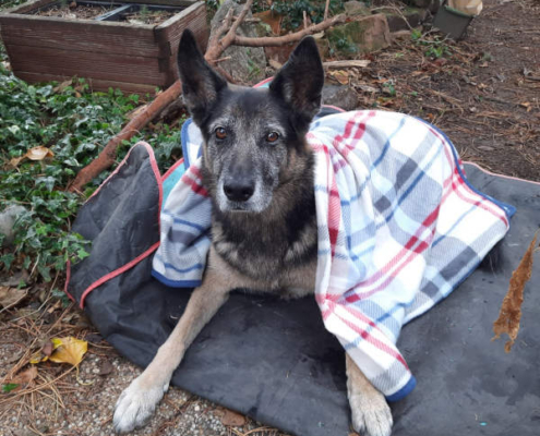 -Eine gut eingepackte Mischa während ich im Garten rumgewerkt hatte