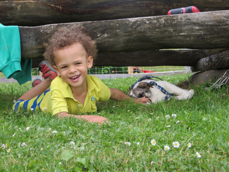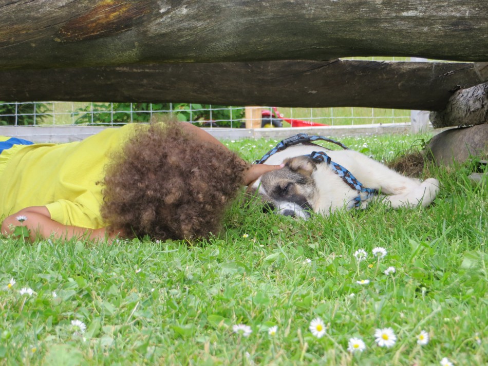 Alison geht´s sehr gut – sie ist wirklich sehr tüchtig, und liebt alle – besonders die kleinen Kinder. Sie spielt sehr viel mit unserem Loysi und dann schlafen sie nebeneinander eine Runde auf der Veranda. Sie liebt Wasser und hohes Gras, frißt sehr brav (und bedächtig !), geht brav Gassi – auch „Unfälle“ passieren nur sehr selten. Und sobald die Lichter abgedreht werden, verschwindet sie ins Schlafzimmer und schläft die ganze Nacht wie ein Murmeltier am Fußende des Bettes (und manchmal auch ein bisschen weiter oben :))
