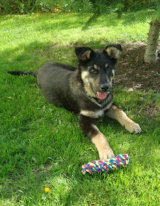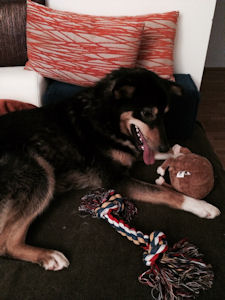 Die kleine Maus hat sich schon ganz gut eingelebt und beginnt langsam uns immer mehr zu vertrauen. Ich glaube sie ist quasi ein 1 1/2 jähriger Welpe…