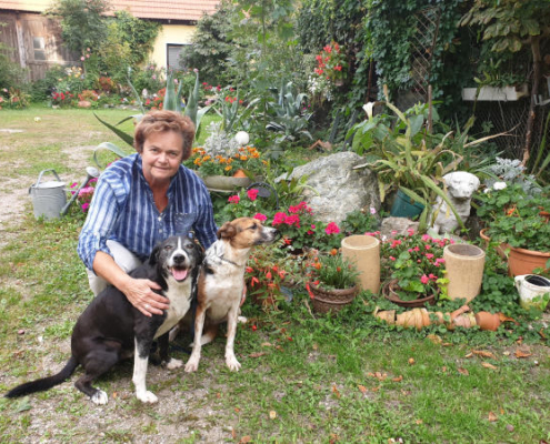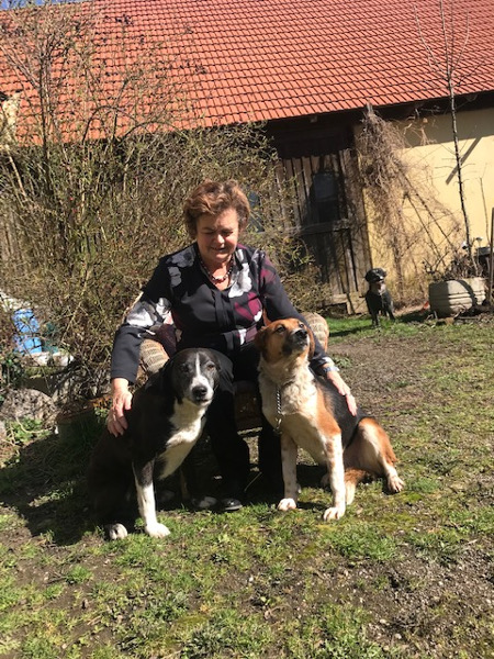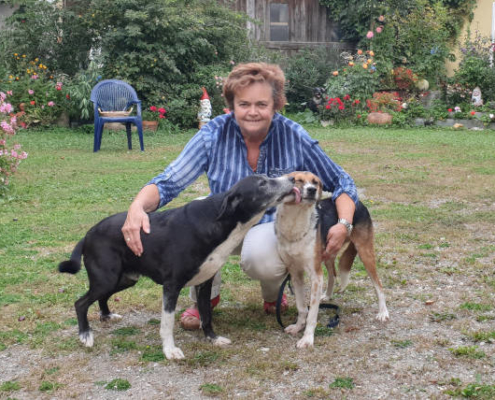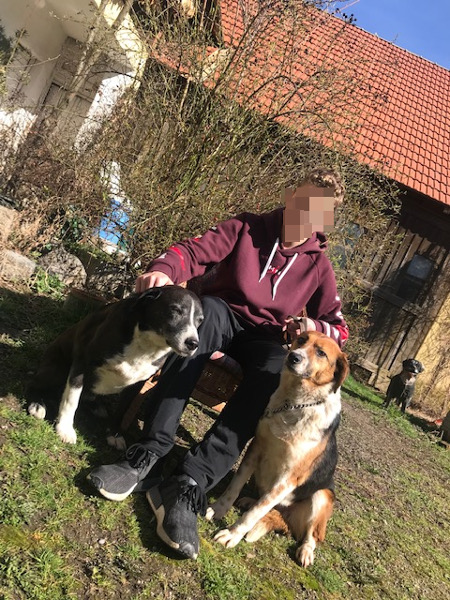 Der 2. Hund am Foto ist „Sandro“, der „Lebenspartnerhund“ von Shila. Er schleckt sie immer so viel beim Maul ab, und sie erträgt es mit großer Geduld….
