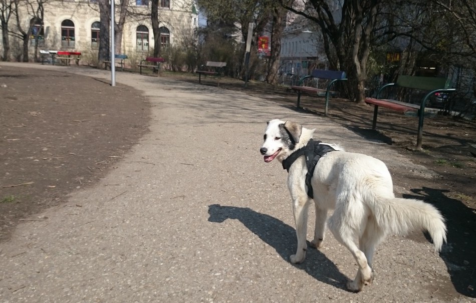 SNJEZA, das bedeutet Schneeweißchen, ist eine etwa 20 Monate alte, kastrierte Mischlingshündin, die etwa 17 kg bei einer Größe von 52 cm wiegt.