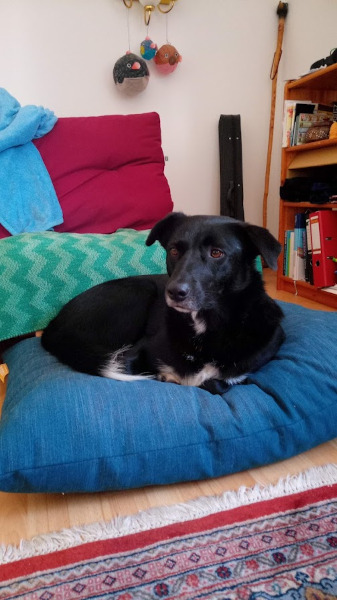 Sonst gibt’s nicht viel Neues, er ist so freundlich und verschmust wie immer; am liebsten würde er den ganzen Tag lang nur kuscheln, und egal, wo wir hingehen, er findet überall Leute, die ihn streicheln. Ich hatte vom Kraulen tatsächlich schon einmal einen Muskelkater im Arm! Bei anderen Hunden ist er jetzt wählerischer als früher, auch mit Hunden, die er sympathisch findet, spielt er oft einfach nicht. Dafür hat er aber seine besten Freunde, mit denen er sehr gerne und sehr wild spielt, sodass er nachher immer ganz k.o. herumliegt 😂