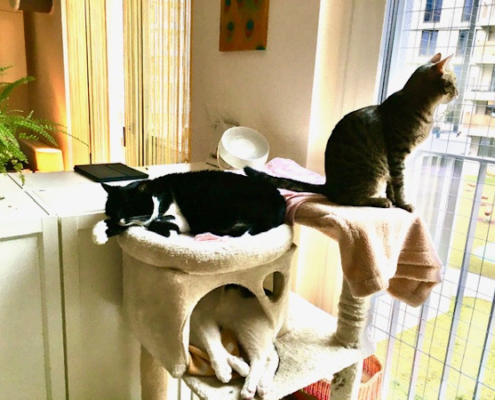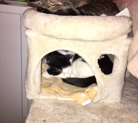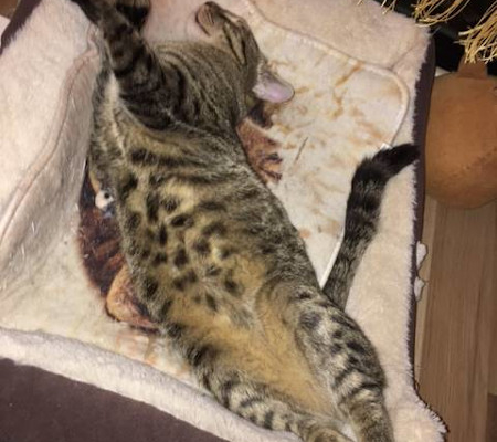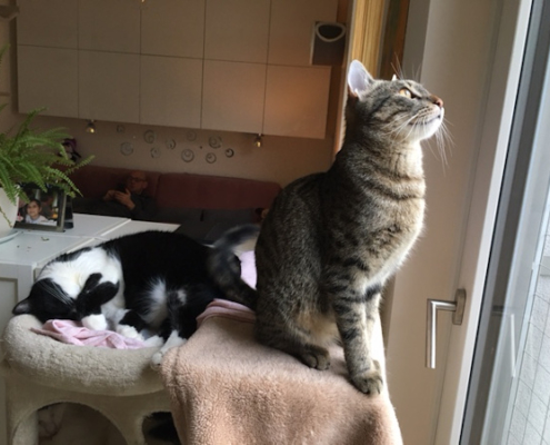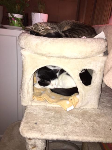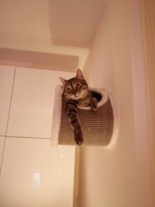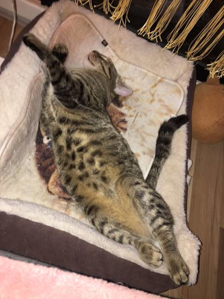 Dankeschön für Dein liebes Mail. Ja, bei uns läuft alles gut – Toby ist süß, frech und aufgeweckt – und hält die Bude nach wie vor auf Trapp 😃😜👍 Ein süßer, kleiner Wirbelwind 😺😹 (Anbei ein Foto, nachdem sich „der Sturm gelegt“ und Toby sich ausgetobt hat 😂).