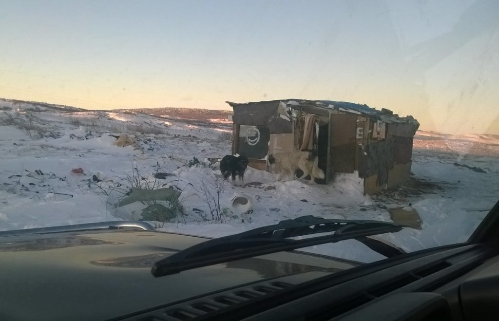 I have just saved 2 poor poor poor puppies. It was a horrible scene. The poor baby girls had been abandoned (probably this morning) on the side of the road on the edge of the rubbish tip which is located about 1200 m above sea level about 10km from Tomislavgrad. Please have a look at the pictures that Matea took. The temperature was minus – 16. C. It was freezing and there was a blizzard blowing. The wind was so strong. The poor babies would have died during the night due to the freezing cold. Due to the wind there is so much snow on the road.