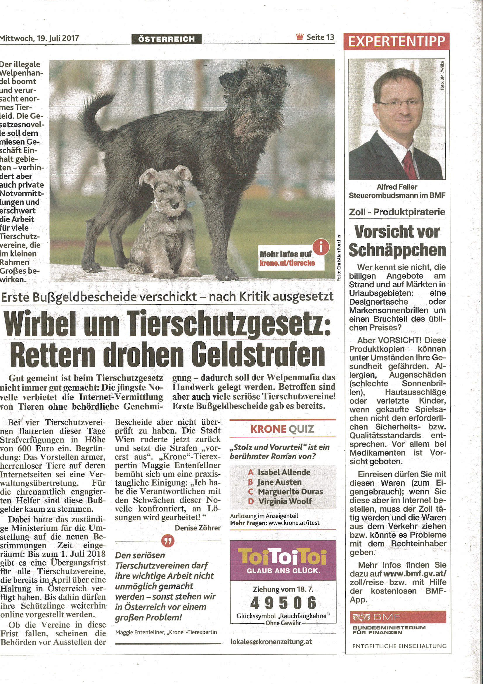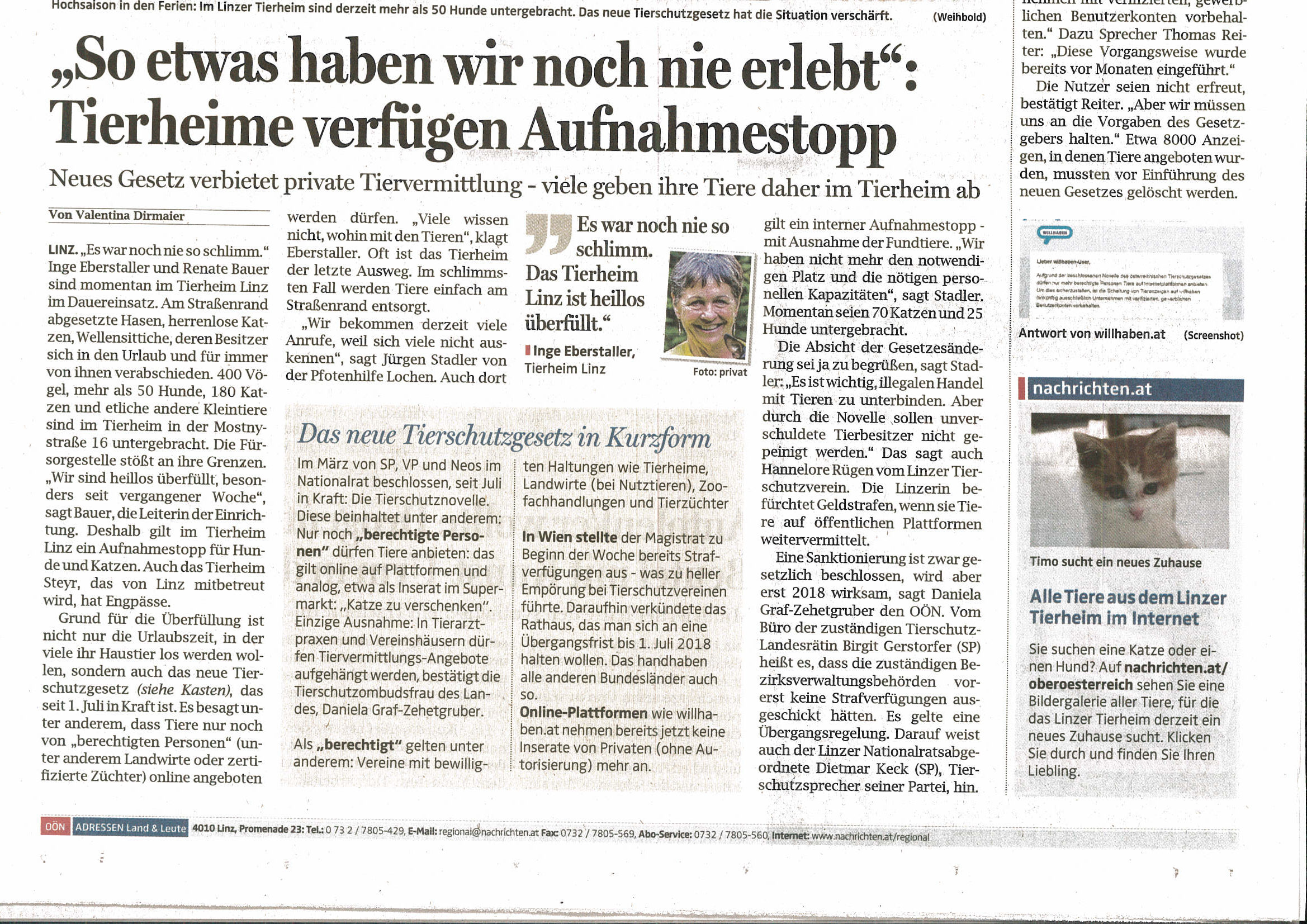 Weitere Presseberichte zum TSchG