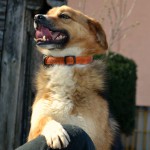 Wir haben auch jetzt viel Arbeit im Garten und wenn ich die Handschuhe anhab und nur einen auszieh, fordert er mich auf wie wenn ich auch ein Hund wär und ich machs auch und plötzlich hat er mir den zweiten Handschuh weggenommen und ist im Garten herum gesaust. Er schüttelt ihn auch, wir haben so lachen müssen. Er ist ein richtiger Kasperl. Steckerl nimmt er auch und zerbeißt sie.